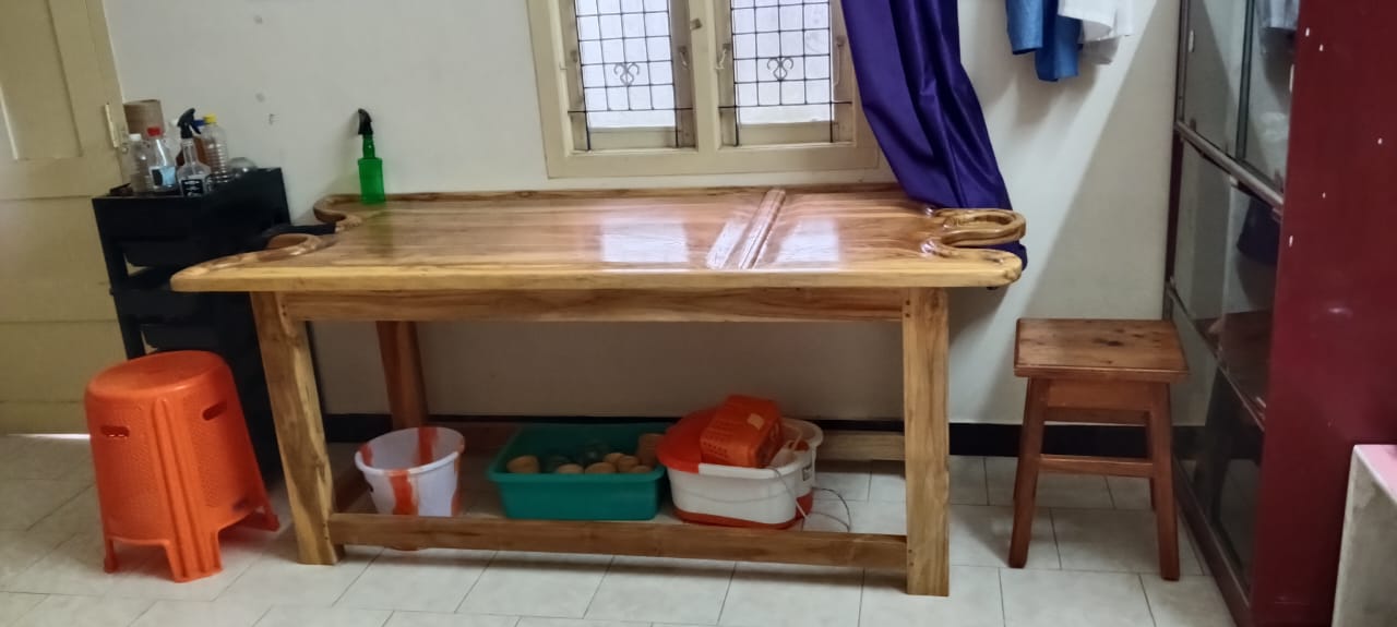 Herbal oils, medicinal powders, and natural remedies form the core of Ayurveda, supported by specialized massage tools and therapeutic equipment to rejuvenate and detoxify the body.